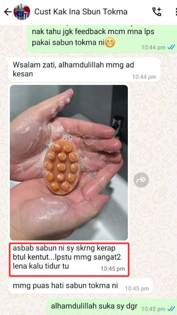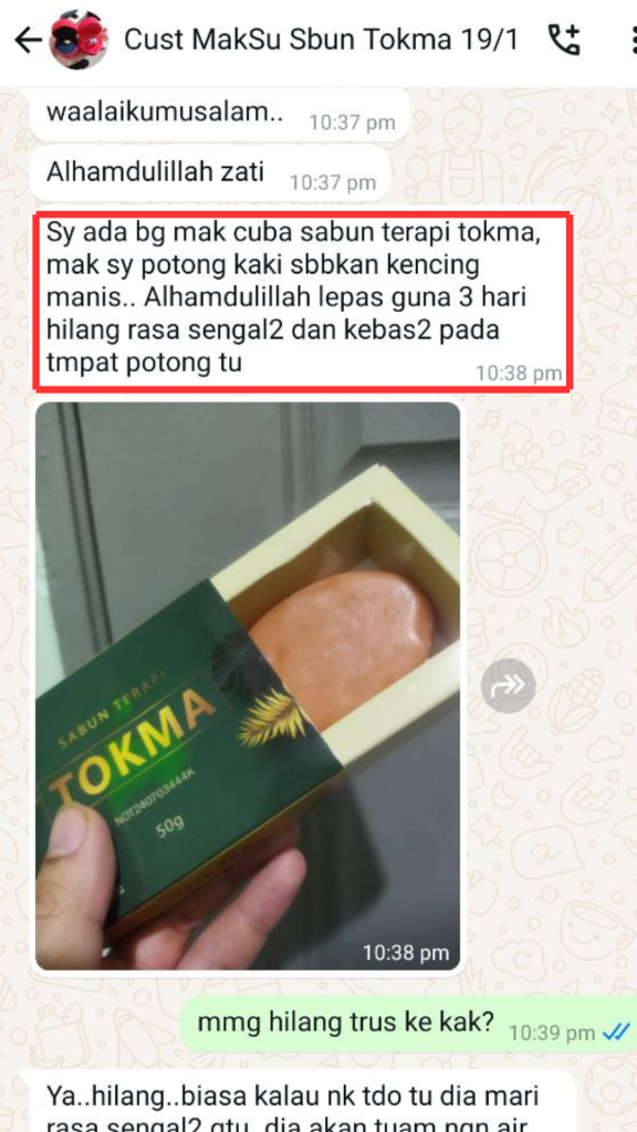 Tiada kesan sampingan kerana SABUN TERAPI TOKMA hanya menggunakan diluaran sahaja.