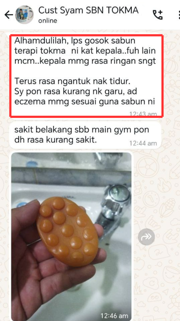 1. Gosok Sabun Terapi Tokma sampai berbuih ditempat yang bermasalah seperti dikepala, tangan, kaki, leher & lutut…