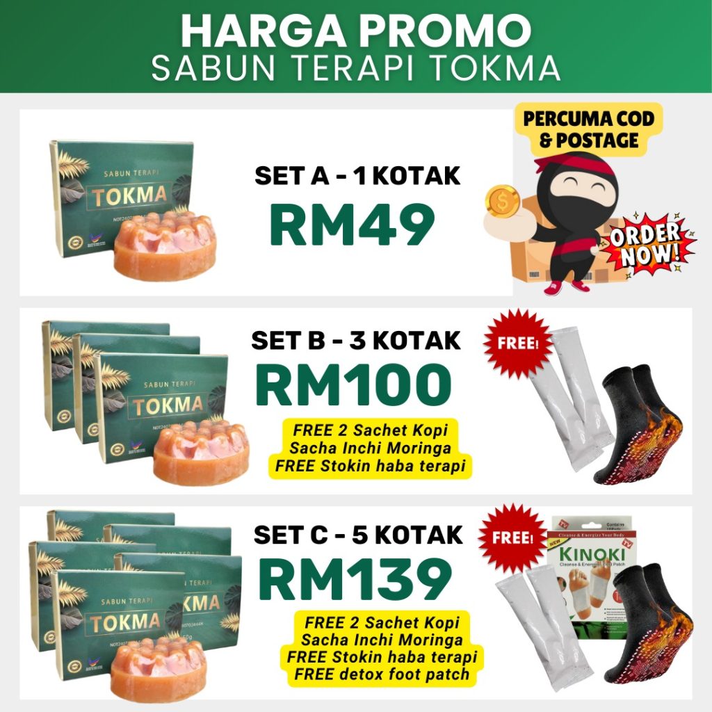 Anda akan dapati perbezaan ketara.. badan rasa ringan, tidur pon lebih selesa, angin dalam badan berkurangan, dan sakit sendi dan urat pon hilang selepas amalkan SABUN TERAPI TOKMA